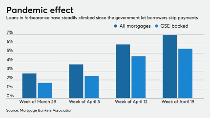 Total forbearance driven by the coronavirus rose by 25 basis points, which suggests it is still growing but at a slowing pace, according to the Mortgage Bankers Association.