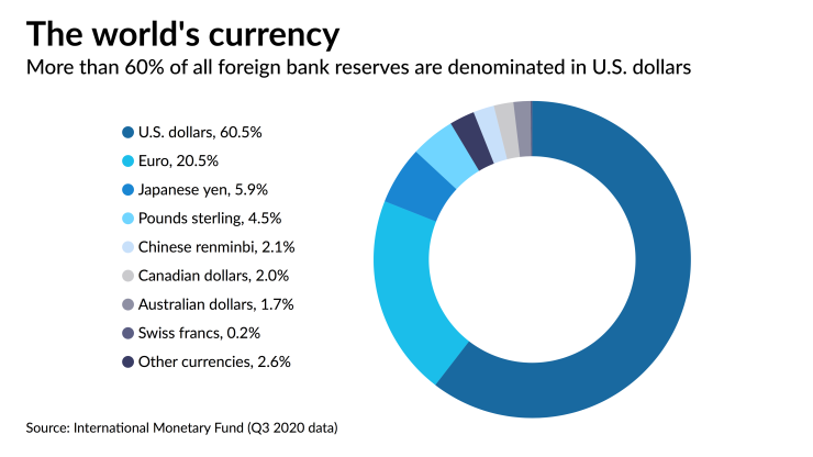 Treasuries are no less popular abroad. The dollar’s status as the world’s reserve currency — a status
