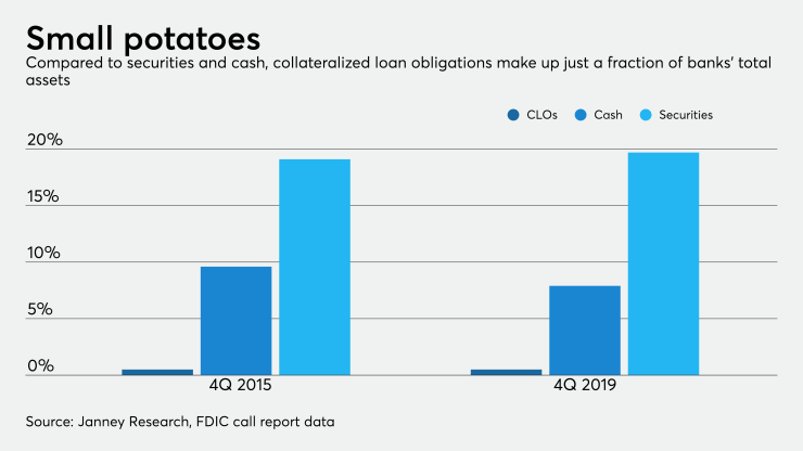 Collateralized loan obligations comprise less than 1% of all banks' securities, but these minor bank holdings received temporary fame recently when investors used